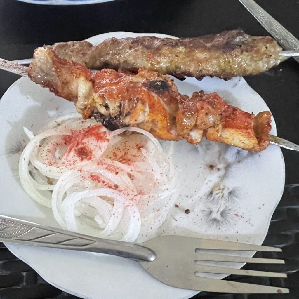 シャシリク(串焼き料理。マトン、チキン、ビーフと豚肉以外は何でもある)